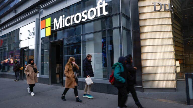 Exterior view of the Microsoft Times Square building in New York City on Jan. 29, 2023.