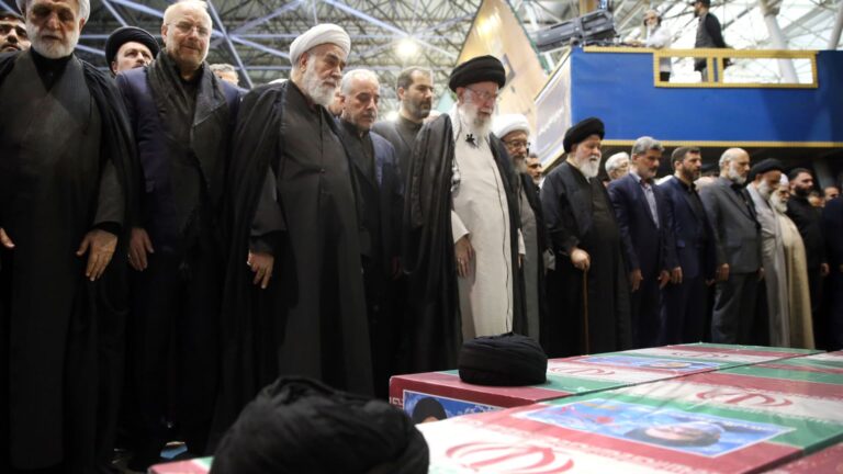 Iran’s Supreme Leader Ali Khamenei leads funeral prayer for the late Iranian President Ebrahim Raisi, Foreign Minister Hossein Amir-Abdollahian and other officials who died in a helicopter crash at the Tehran University campus in Tehran, Iran on May 22, 2024.