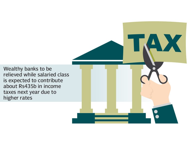 While the government plans to abolish the tax on banks, it is not ready to reverse the significant tax increase for the salaried class, which is now expected to contribute about Rs435 billion in income tax next year due to higher rates.