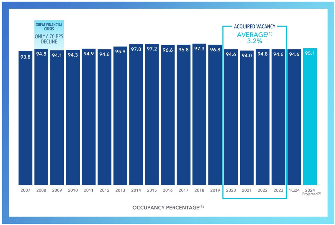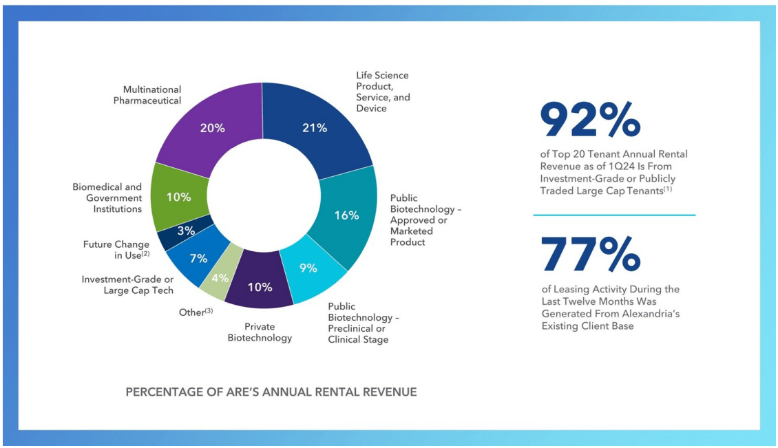 Alexandria Real Estate Equities’ portfolio is well-leased and had an occupancy of 95.1% in 1Q24, which reflected the highest occupancy percentage since 2019.