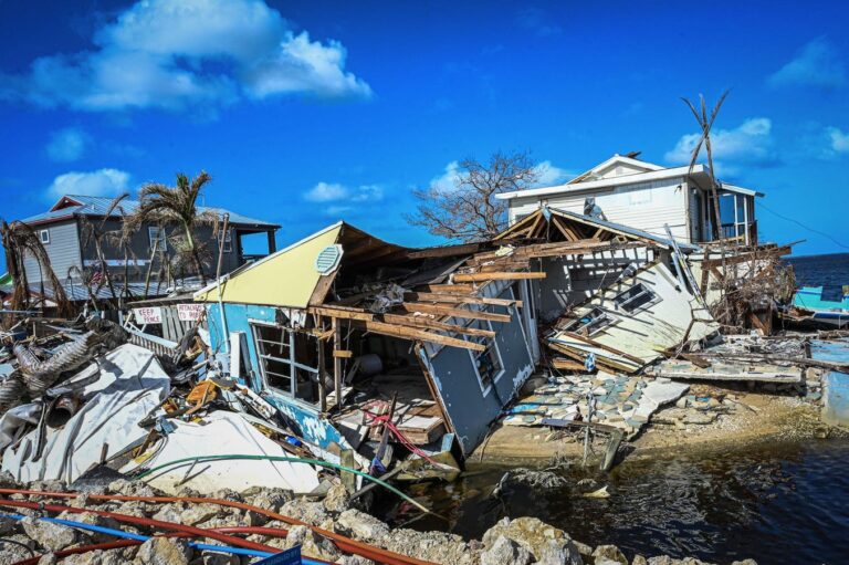 Destroyed homes and debris are seen on Matlacha Island in Lee County, Florida, in the aftermath of … [+]