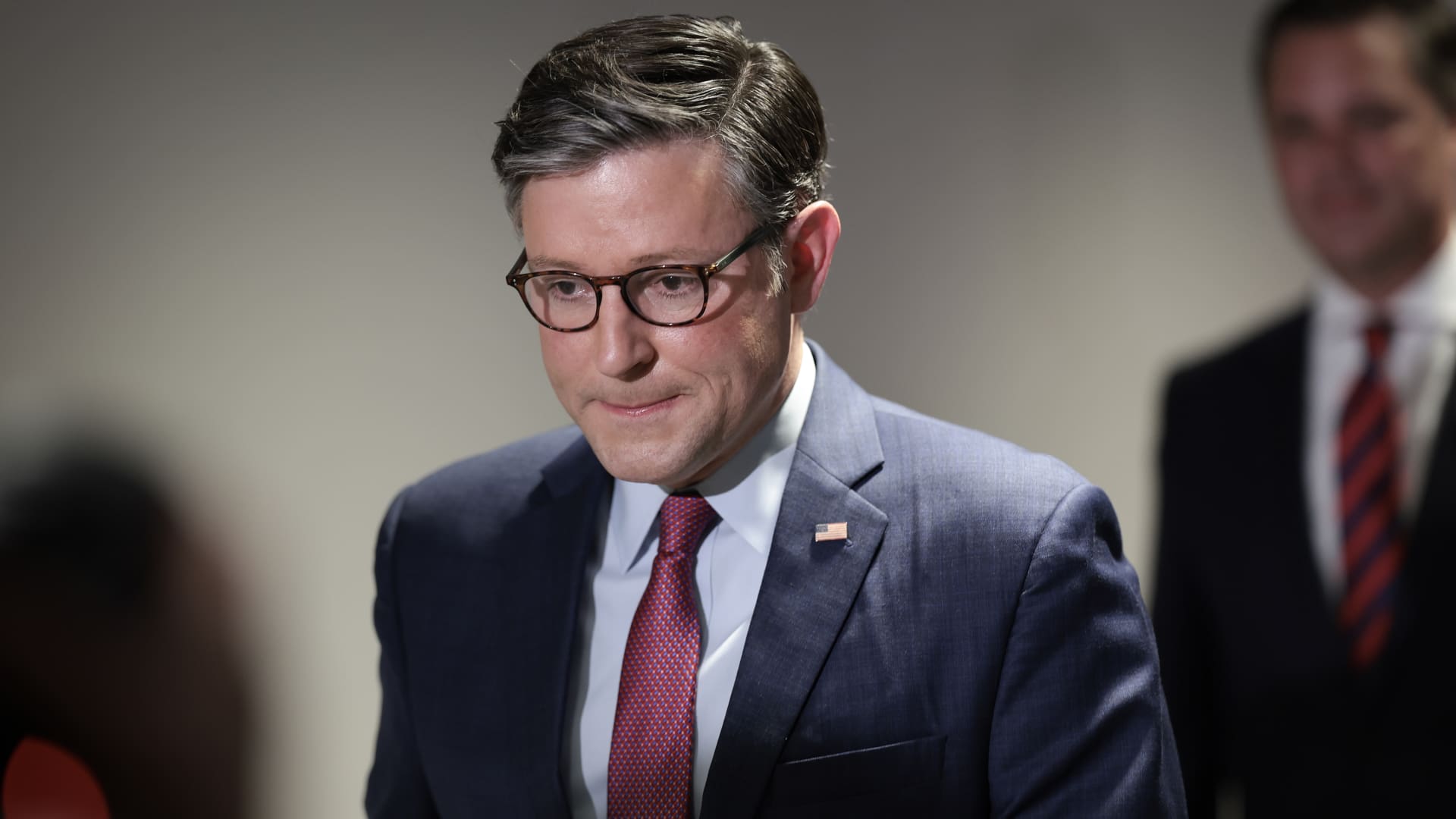 U.S. Speaker of the House Mike Johnson (R) (R-LA) departs a press conference with Republican leadership on Capitol Hill on September 18, 2024 in Washington, DC.