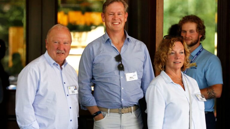 Mike Cavanagh, president of Comcast Corporation, at center, during the Allen & Company Sun Valley Conference in Sun Valley, Idaho, July 12, 2023.