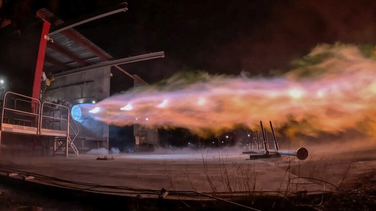 A hot fire test of an Archimedes engine, which powers the company’s Neutron rocket.