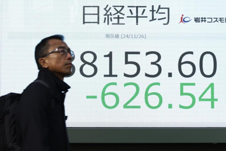 TOKYO (AP) — Asian shares mostly declined on Tuesday as worries spread over President-elect Donald Trump’s comment that he plans to impose sweeping new tariffs on Mexico, Canada and China as soon as he takes office.