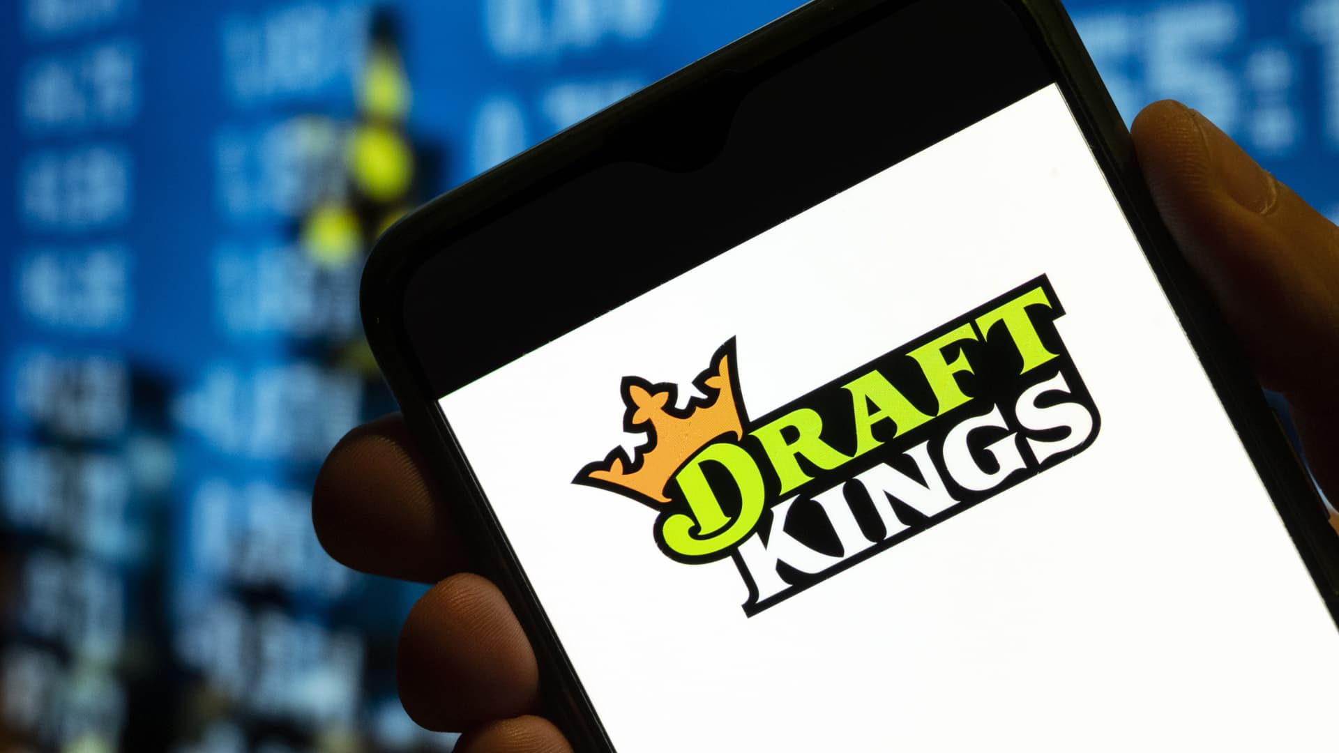 Sports betting company DraftKings’ logo is displayed on a smartphone screen.