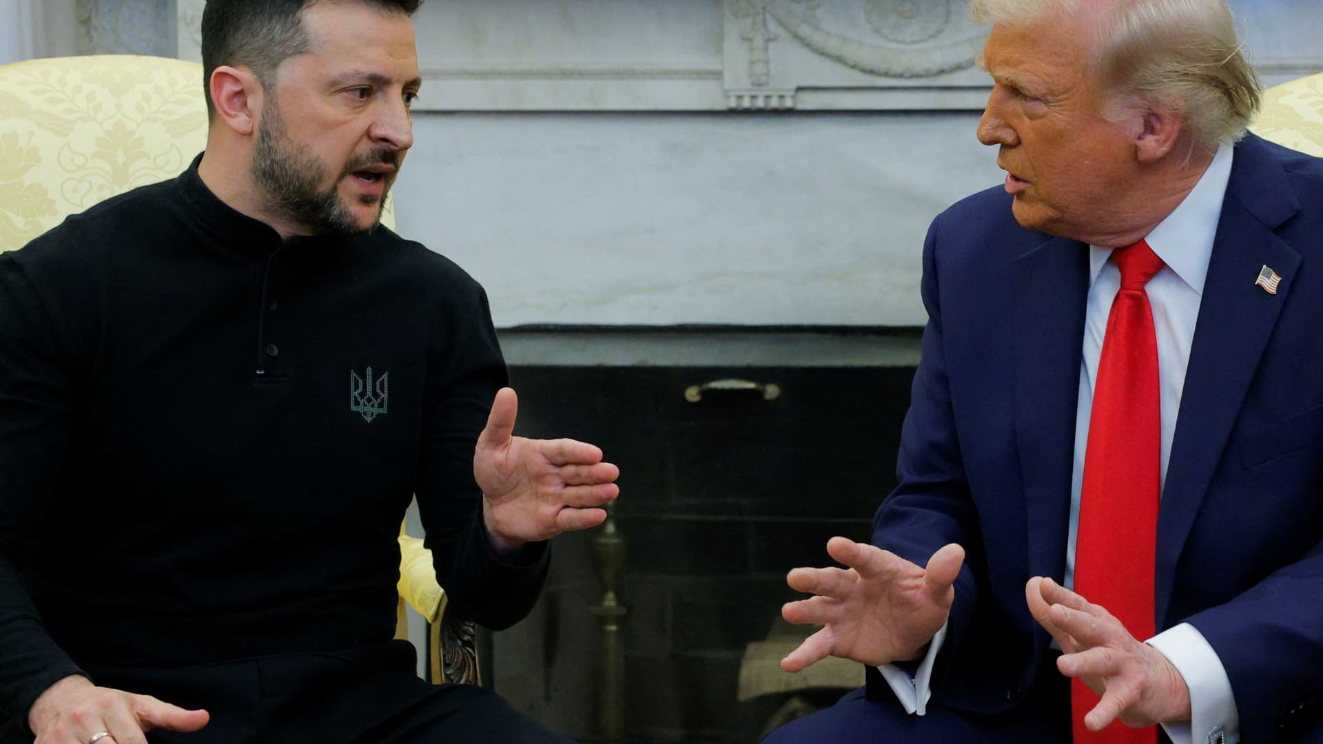 U.S. President Donald Trump meets with Ukrainian President Volodymyr Zelenskyy at the White House in Washington, D.C., U.S., Feb. 28, 2025.