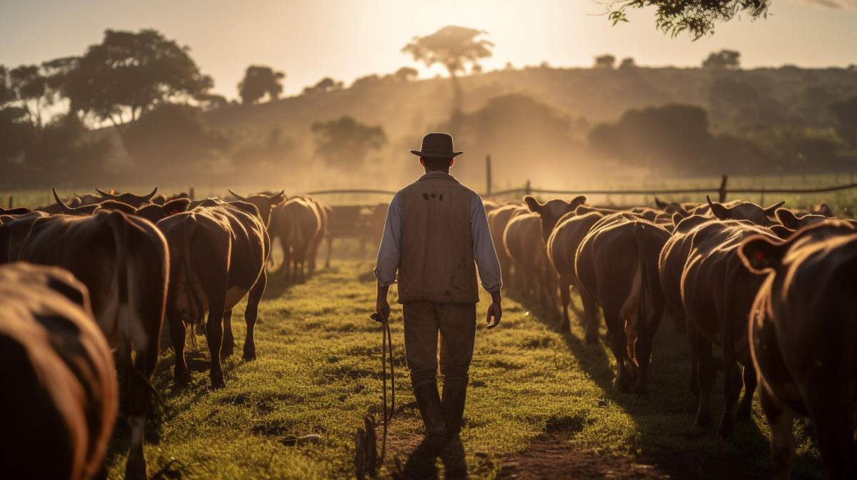 A farmer tending to a herd of cattle with Innovative Parasiticide and Vaccine Products.