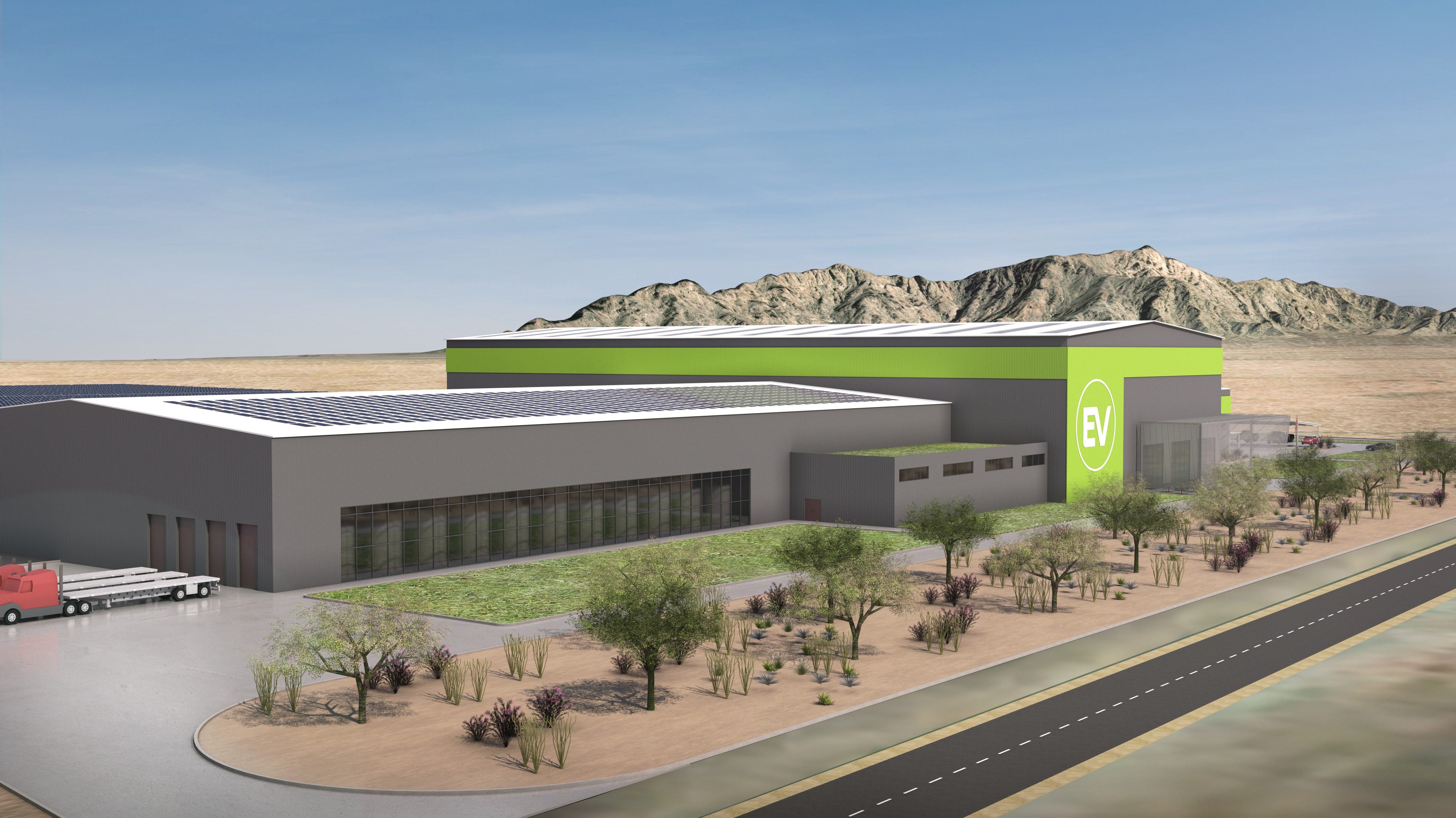 Renderings of EVelution Energy’s cobalt processing facility in Wellton, Arizona, are shown. Construction is set to begin toward the end of 2025.