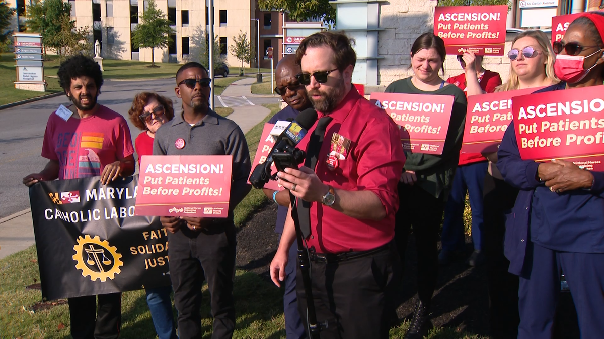 Registered nurses at Ascension Saint Agnes Hospital rallied Monday morning over the hospital’s financial investments, calling for the hospital to prioritize patients over profits.