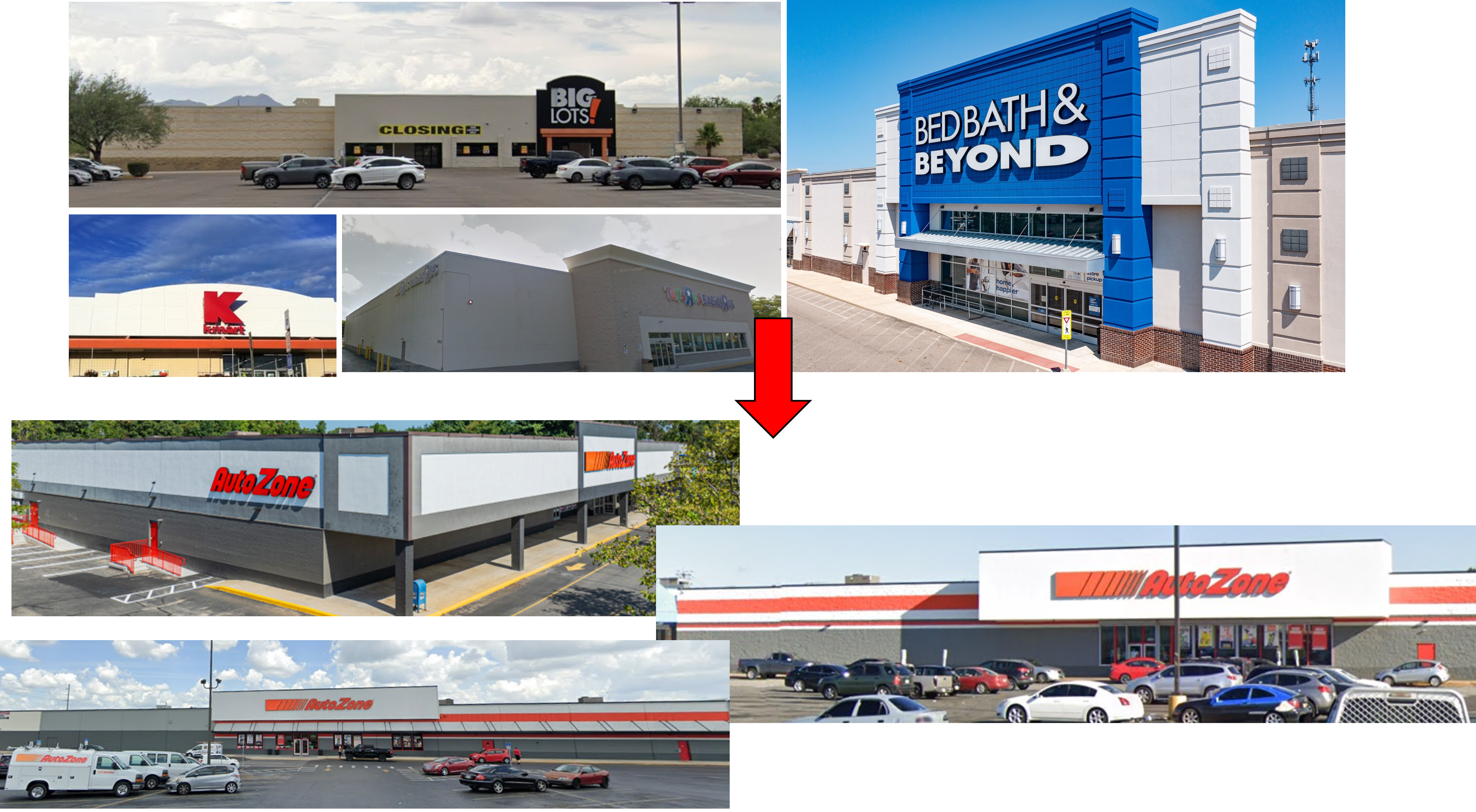 More recently Auto Zone has set its sites on repurposing the real estate of more recently bankrupt retailers.
